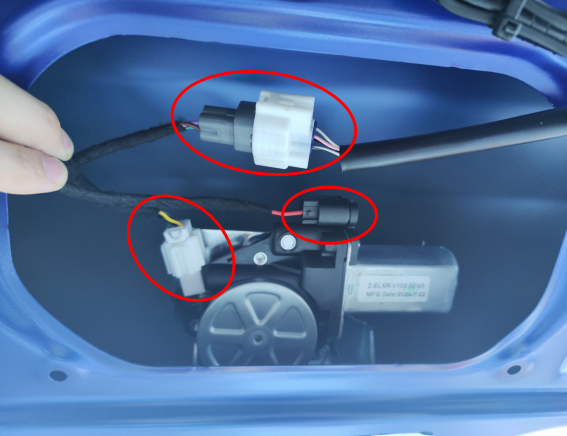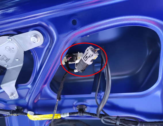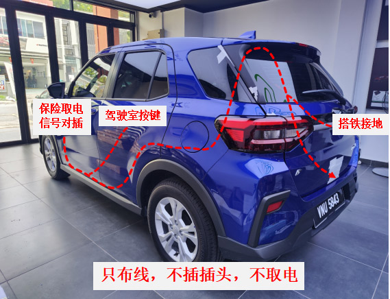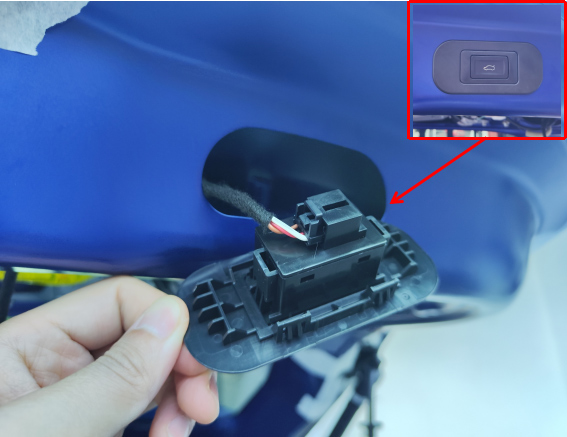 16、原車(chē)扣手位安裝尾門(mén)加裝開(kāi)關(guān),插好插頭。