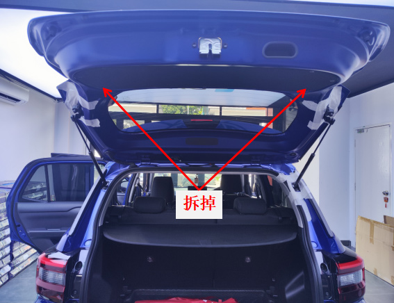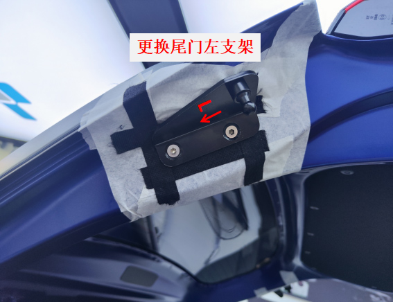 8、更換尾門(mén)左支架(支架貼紙箭頭指向合頁(yè)鉸鏈,左右一樣)。