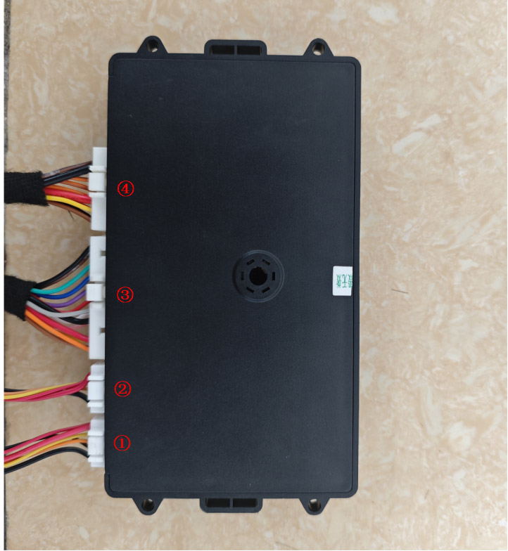 28、將撐桿線(xiàn)①②,鎖信號線(xiàn)③,電源線(xiàn)④按順序插入控制盒。