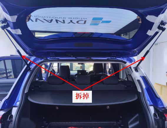 10、安裝電動(dòng)撐桿,L在左,R在右(撐桿編號的第一個(gè)字母),撐桿帶線(xiàn)的一端安裝在尾門(mén),左右一樣。